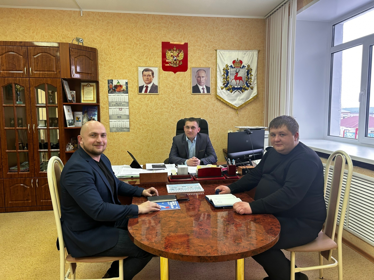 Директор регионального Координационного центра НГЛУ по вопросам формирования у молодежи активной гражданской позиции, предупреждения межнациональных и межконфессиональных конфликтов, противодействия идеологии терроризма и профилактики экстремизма Олег Пикунов посетил муниципальный округ Воротынский Нижегородской области и встретился с Главой МСУ Александром Савельевым.