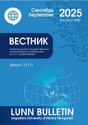 Вестник Нижегородского государственного лингвистического университета им. Н. А. Добролюбова. Вып. 1 (69). – Н. Новгород: НГЛУ, 2025. – 178 с. |