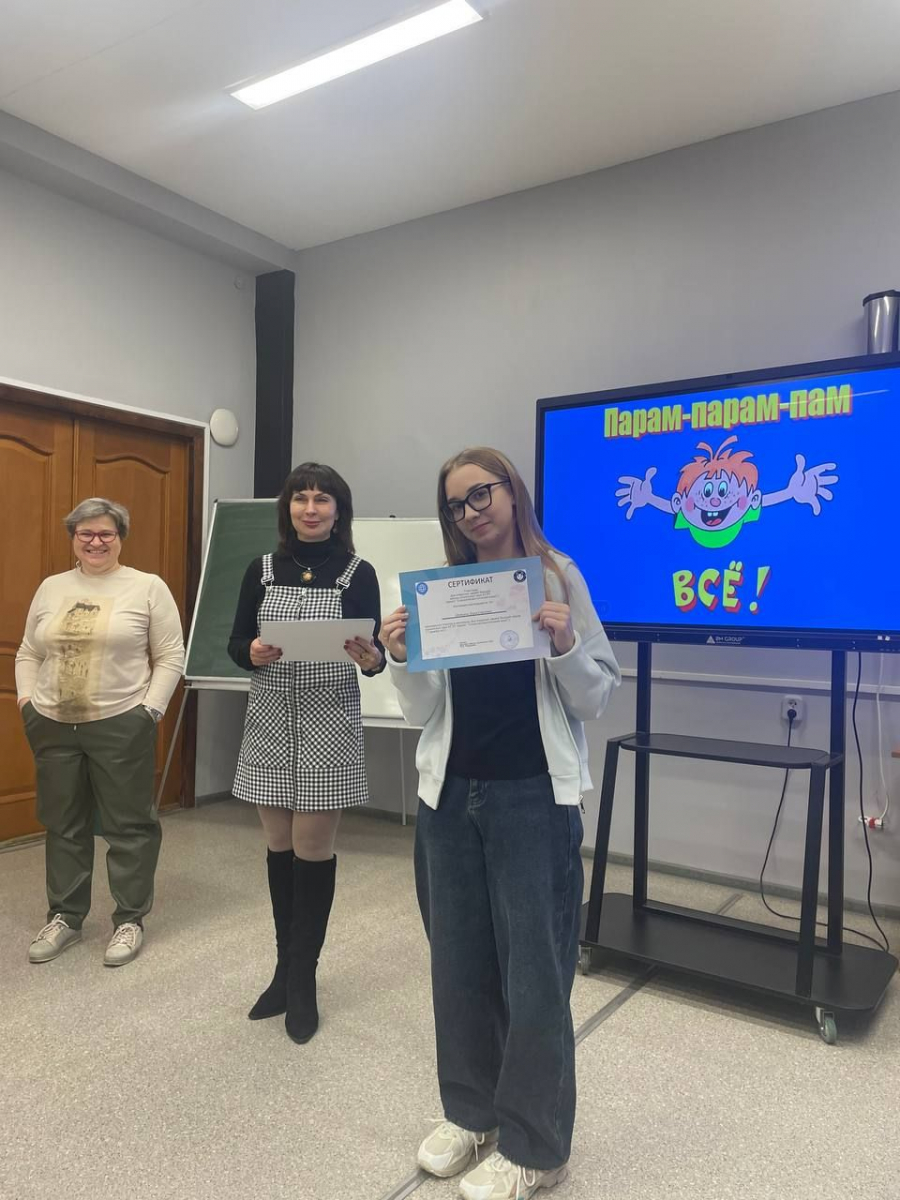 Завершающим этапом стал квиз по инновациям в современном мире от и.о. заведующей кафедрой международного менеджмента, экономики и информационной безопасности Анны Галушкиной. По итогам викторины самые активные участники были награждены памятным мерчем НГЛУ.