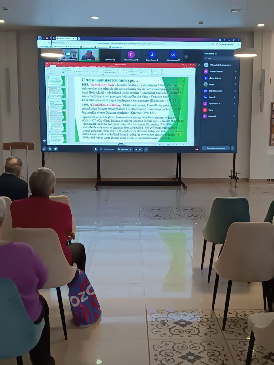 В докладе термин «дискурс» был проанализирован в историко-лингвистическом аспекте на большом текстовом и лексикографическом материале, опубликованном в период с 1518 г. по настоящее время.