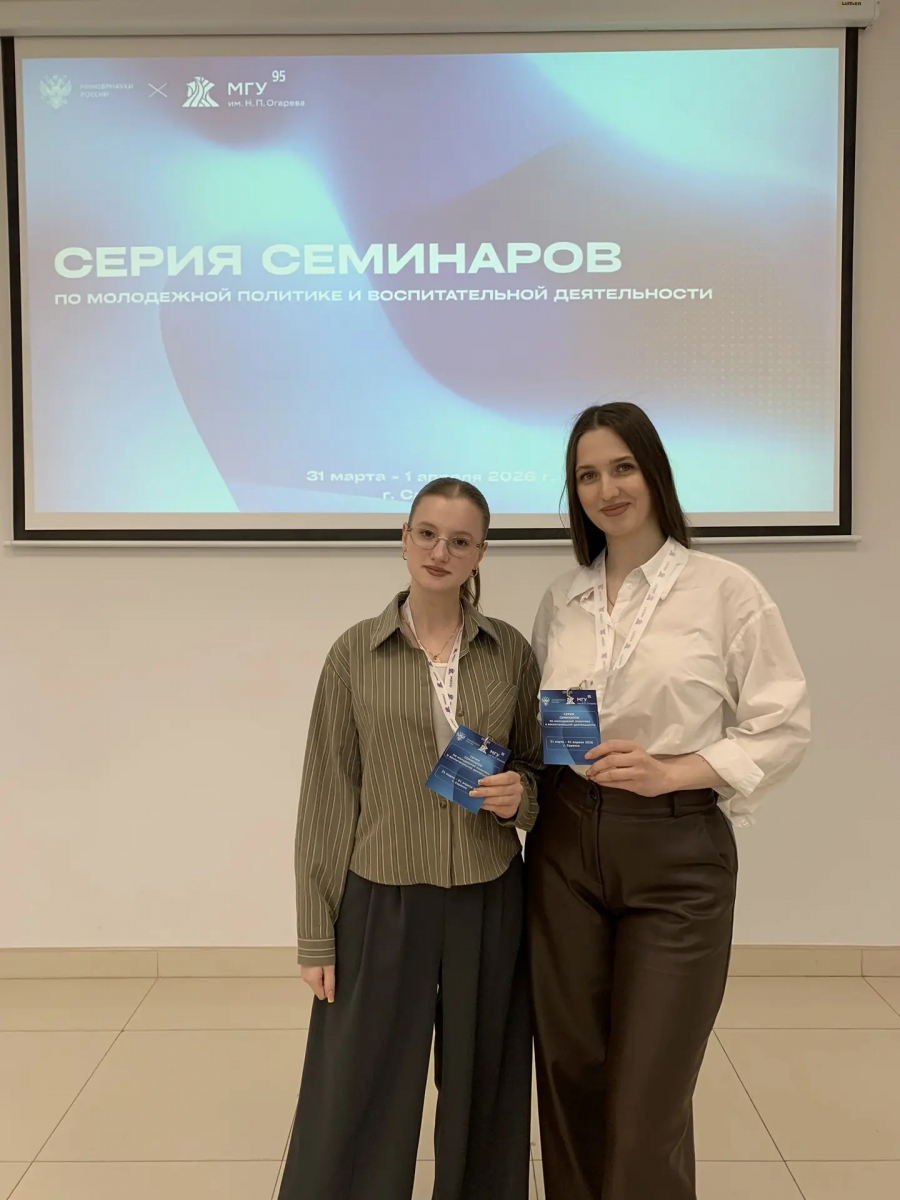 В апреле 2026 года сотрудники Управления по молодежной политике и социальным коммуникациям Валерия Давыдова и Ирина Матюшина приняли участие в семинаре «Взаимодействие вуза и индустриальных партнеров в части молодежной политики и воспитательной деятельности», который прошел на площадке Мордовского государственного университета имени Н. П. Огарёва.